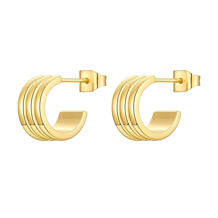 ✨ Details: Triple-band stacked effect - Gold-plated stainless steel - Lightweight and hypoallergenic - Post-back closure for secure fit - Tarnish and water-resistant
